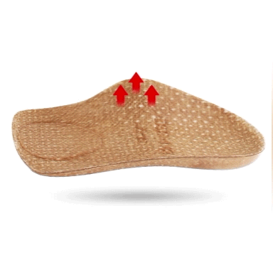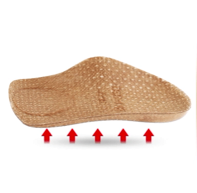Cork is the ideal material for providing optimal arch support. As the base of an insole, it molds to the shape of the foot over time, creating a more comfortable, supported step that's unique to every person.
